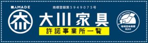 別デザインの「大川家具」ロゴや表記が使われていても特に制限されていません。