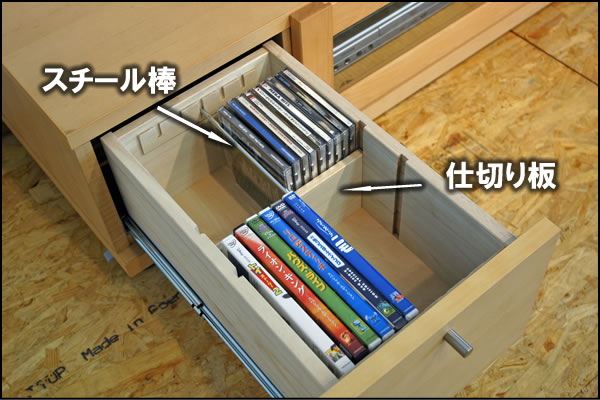 ですので、テレビボード『エウロ』は、CD・DVD仕切り板、