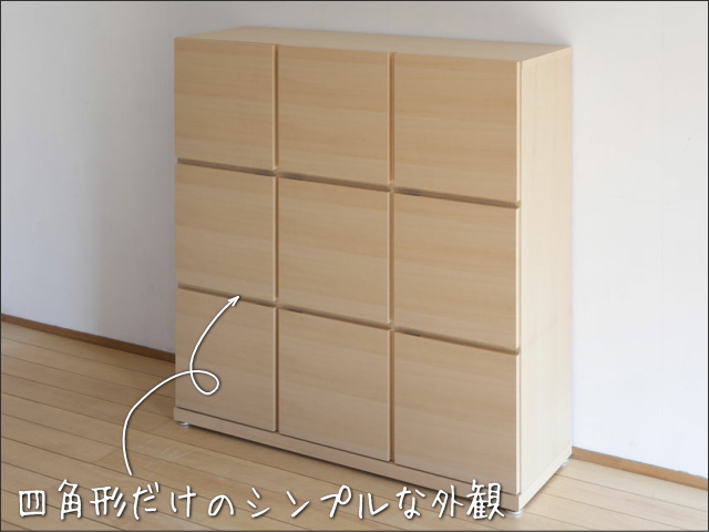 人気天然木のハードメイプルを前面はもちろん、側面、天板にも使用した 上質でシンプルなキャビネット収納です。 9つの収納マスがありますので、収納力もバッチリの商品です。 お客さまを通すリビングだから、物が片付き、上質で広々としたインテリアにしたいですよね |