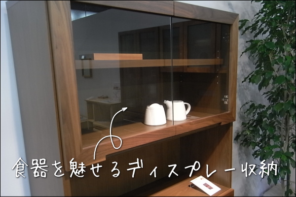 真中に仕切りが無いので、大きい範囲で食器を魅せることができますし、