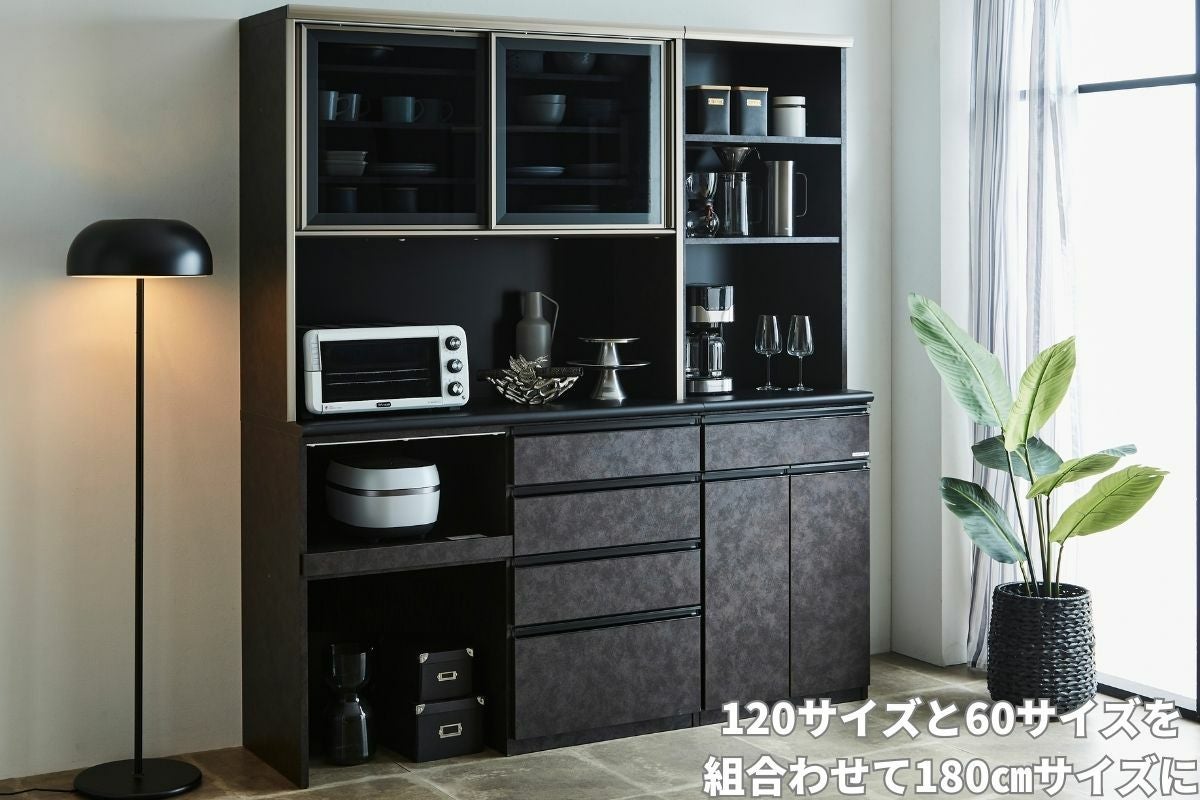 この食器棚は上置きを高さオーダーで追加できます。