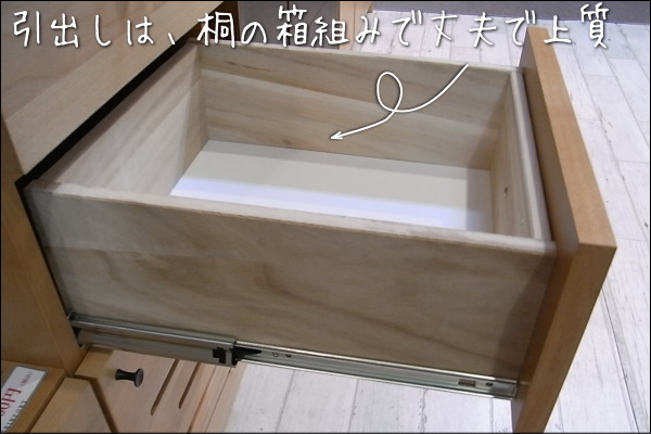 引出しは、桐材を使用し、箱組しています。
